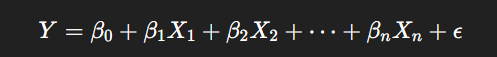 이 식은 X₁부터 Xn까지 여러 변수를 사용해 Y 값을 얼마나 잘 예측할 수 있는지를 보여줍니다.